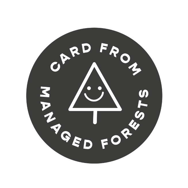We're proud to say all our cards are plastic-free, recyclable, and printed right here in the UK on card from responsibly managed forests, using eco-friendly vegetable inks and with recycled envelopes.